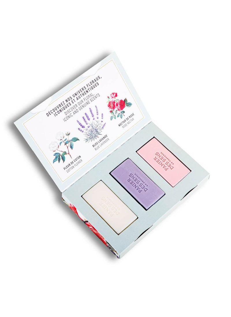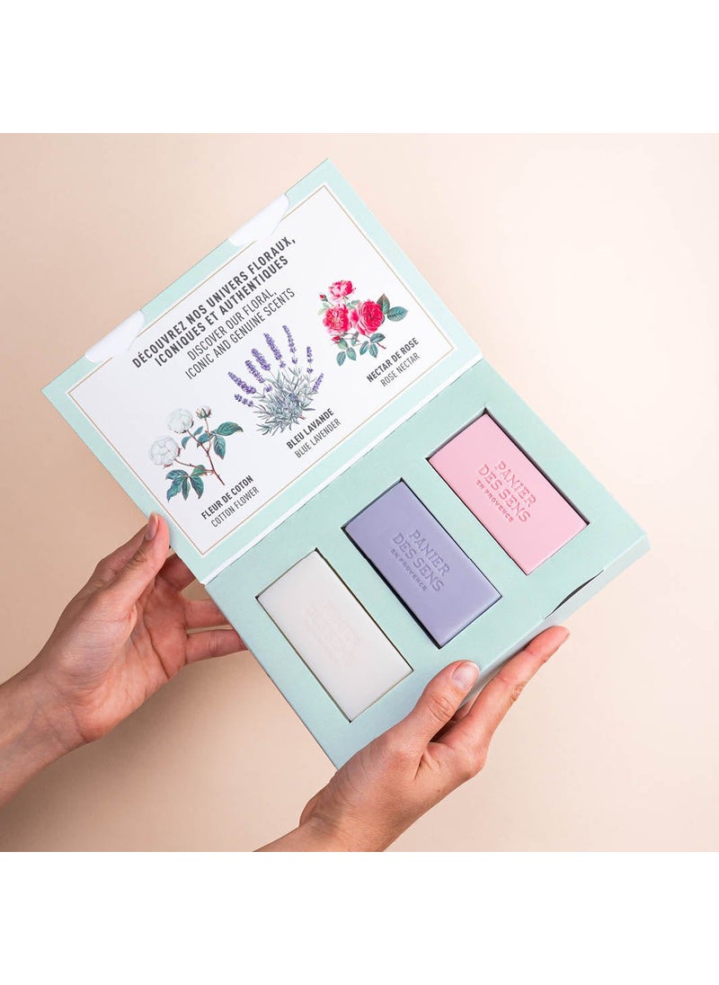 طقم الصابون الصلب المعطر: زهرة القطن، اللافندر، ونكتار الورد