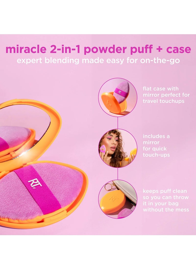 استكشفي تقنية فريدة مع إسفنجة Miracle 2In1 لتثبيت المكياج + حافظة، المصممة لتقديم تجربة فريدة في تطبيق المكياج أينما كنتِ. سواء كنتِ ترغبين في تثبيت المكياج أو تحديثه، فإن الجانب الوردي من الإسفنجة يوفر ألياف ناعمة تلتقط كمية المسحوق المناسبة لتوفير تغطية مثالية. بينما يتيح لك الجانب البرتقالي المصنوع من مواد إسفنجة Miracle Complexion المميزة دمج الجل أو الكريم بكل سلاسة.