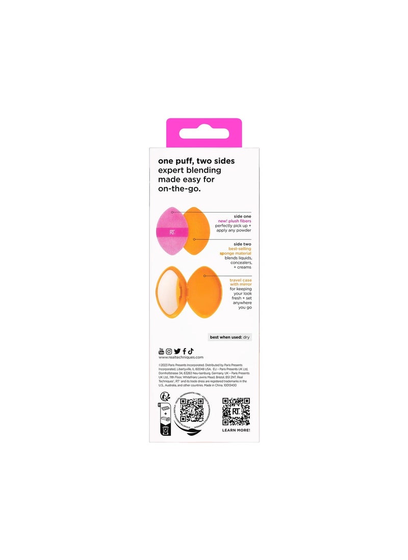 تأتي مع حافظة سفر جديدة ومرآة تسهل الاحتفاظ بالإسفنجة وتتيح لك التعديلات أثناء التنقل! لتنظيفها، يُنصح باستخدام الماء الدافئ وقطرة من جل تنظيف فرش وإسفنجات Real Techniques. نصيحة محترف: لتثبيت بودرة التجميل بشكل مثالي، جربي الضغط بها تحت العينين، على الجبهة، الذقن، أو بجانب الأنف للحصول على مظهر ناعم كالسحاب.