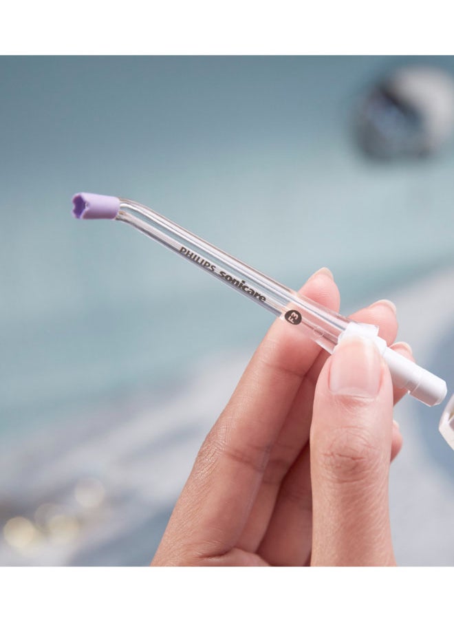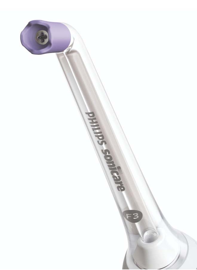 اكتشف قوة التنظيف العميق مع رؤوس فلوسر Sonicare F3 الرباعية من Philips. تتميز هذه الرؤوس باستخدامها الفعّال، حيث توفر أربعة تيارات واسعة من الماء تعمل على إزاحة الجزيئات بين الأسنان بطريقة مدهشة، مما يعزز صحة اللثة ويضفي بريقاً على ابتسامتك. مصممة بدقة مع دليل مطاطي ناعم يحافظ على راحة اللثة دون تحفيز، مما يجعل الاستخدام خالياً من الإزعاج.