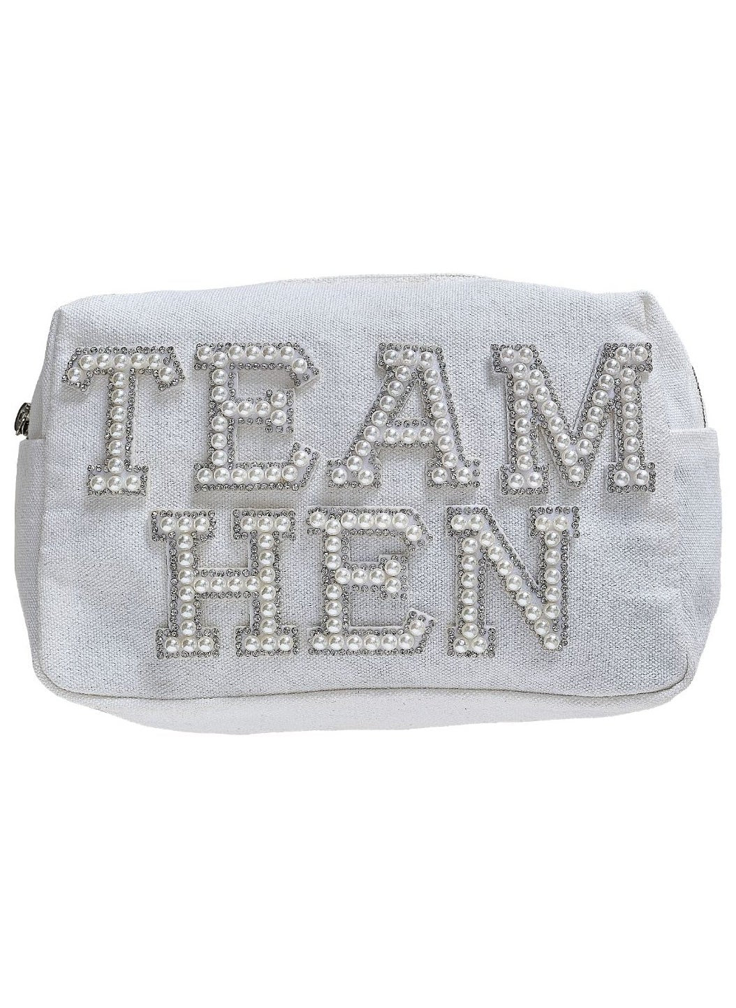 اكتشفي سحر التفاصيل مع حقيبة المكياج 'Team Hen'، حيث يجتمع الأناقة والعملية في تصميم واحد. هذه الحقيبة المصنوعة من القطن الأبيض الراقي، مزينة برقة باللؤلؤ، تقدم لكِ الحل الأمثل لتنظيم أدوات التجميل الخاصة بكِ في أهم المناسبات. بمقاس 20 سم عرضًا و12 سم ارتفاعًا، ومزودة بسحاب فضي اللون يضيف لمسة عصرية على التصميم التقليدي.