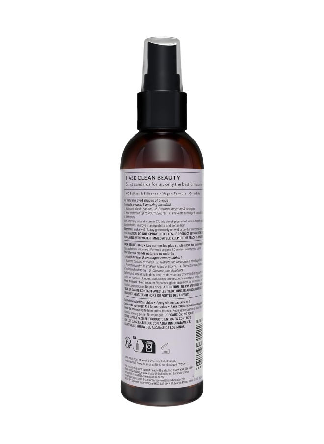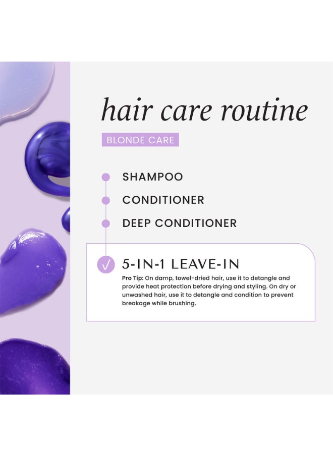 اكتشفي سر الشعر الأشقر النابض بالحياة مع بخاخ العناية Blonde Care 5 في 1. تركيبته المتقدمة المصممة خصيصاً للشعر الأشقر، المصبوغ، والمُبرَز تبرز لمعان اللون وتعزز رونقه. مدعم بصبغات البنفسج وخلاصة البابونج، يعمل هذا البخاخ الخفيف على ترطيب شعرك بعمق ويمنحه القوة والتغذية اللازمة.