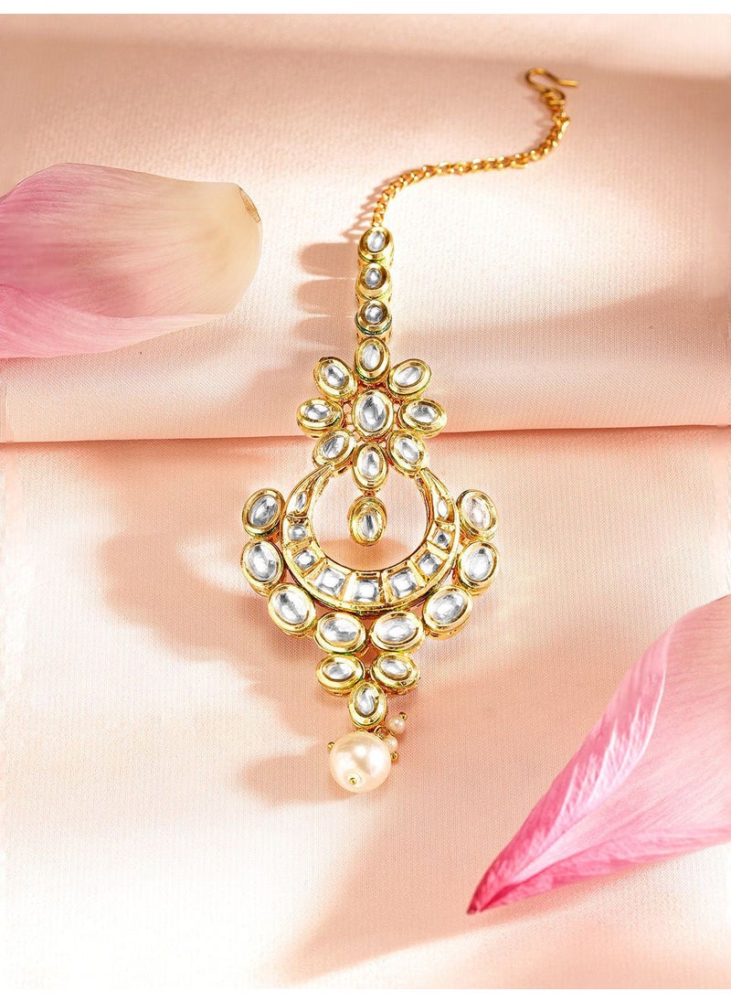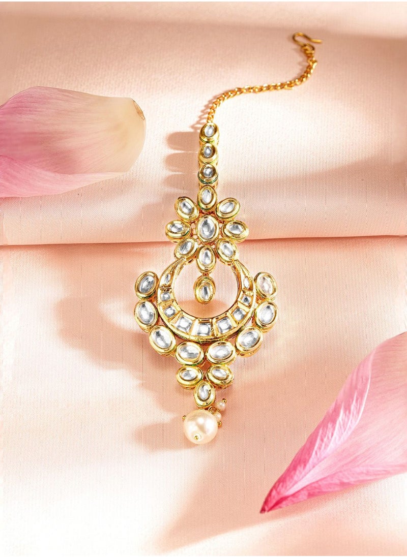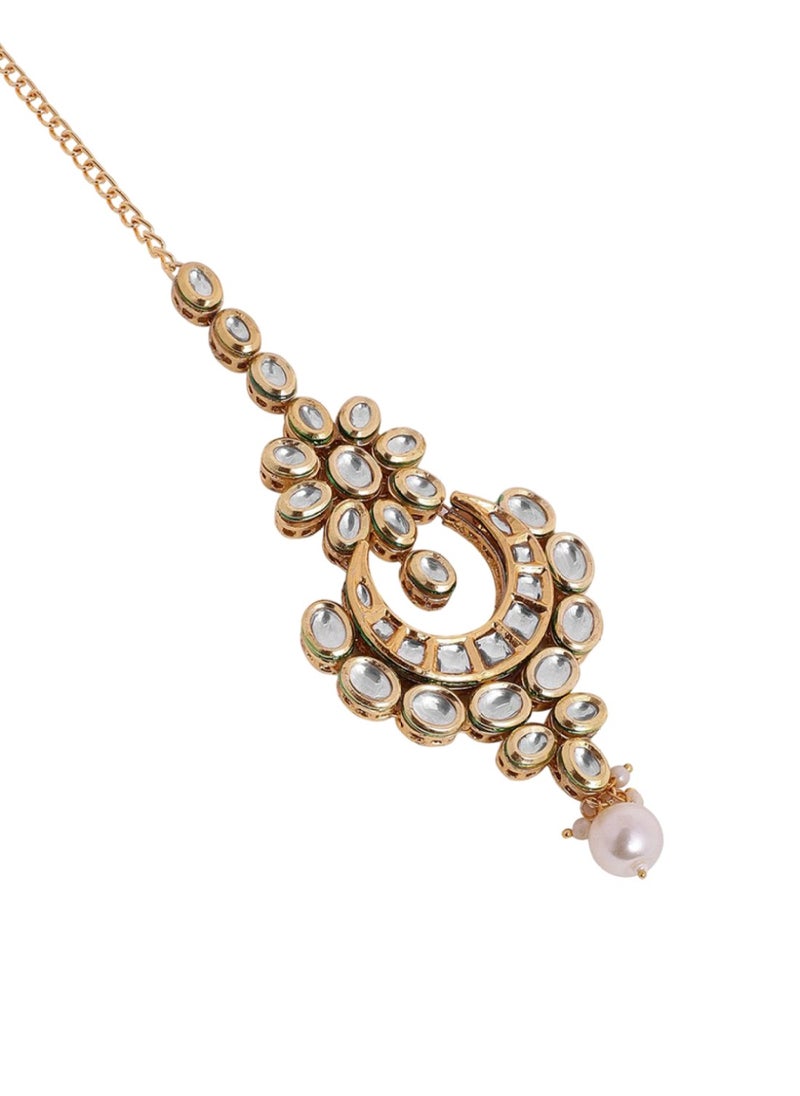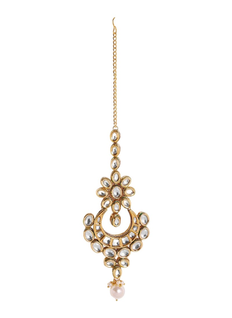 استمتعي بلمسة من الترف والفخامة مع تاج Kundan، المصمم ليكون قطعة مركزية تزين إطلالتك في المناسبات الهامة. هذه القطعة الفنية مصنوعة من النحاس الأصفر العالي الجودة مع تزيينات من أحجار Kundan اللامعة، ومغطاة بطبقة من الذهب التي تضفي بريقًا يأسر الأنظار. مثالية للعرائس أو مشاركتها كقطعة مركزية في الحفلات والمناسبات، حيث تأتي بتصميم يتميز بالأناقة والجمال.
