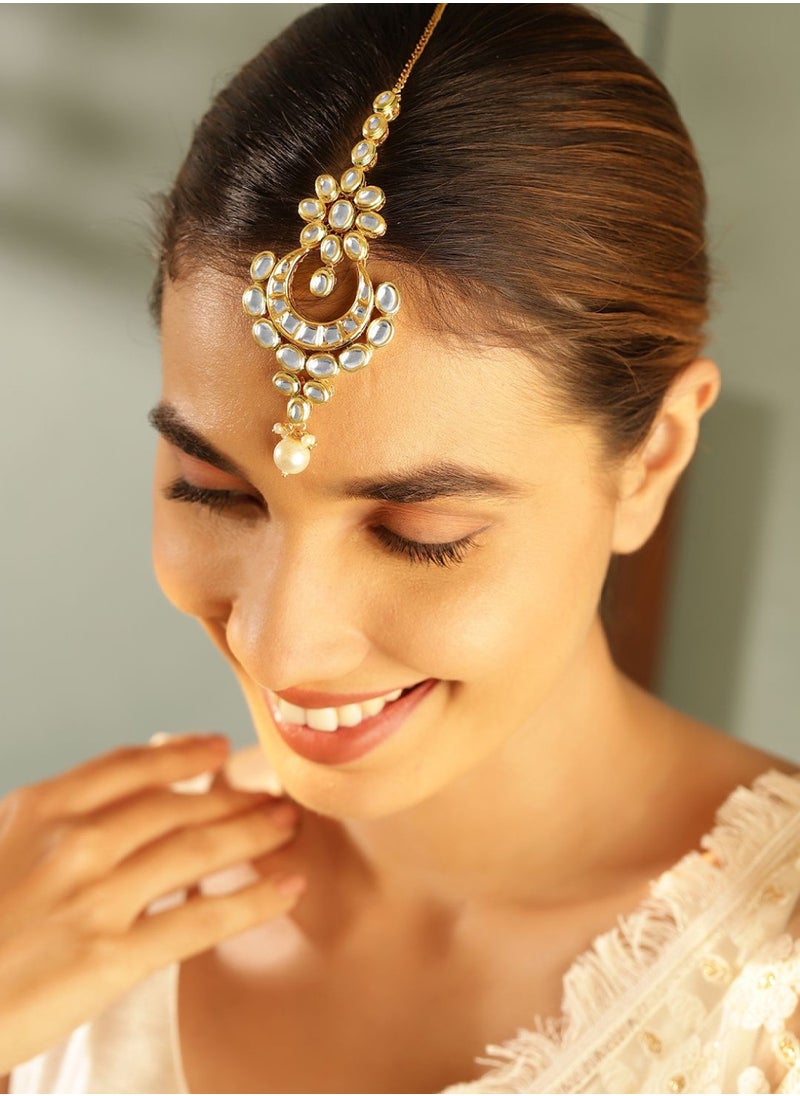احرصي على إضافتها لتشكيلتك من الاكسسوارات لتعززي جاذبية أزيائك بلمسة تقليدية تنبض بالحداثة. لا تفوتي فرصة التألق بإطلالة مستوحاة من التقاليد الغنية للجمال والرقي، من خلال إختيار تاج Kundan لتكوني نجمة الحفل.