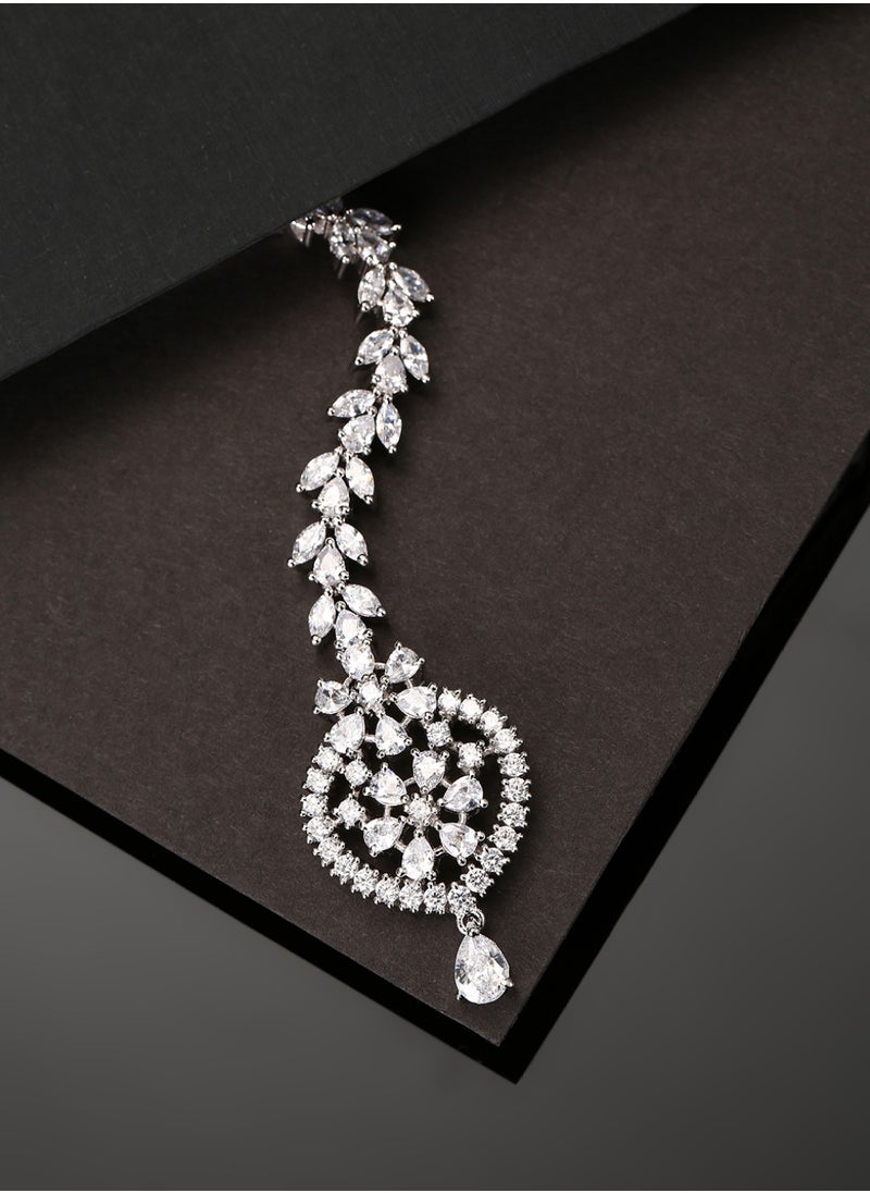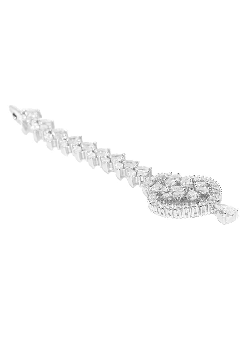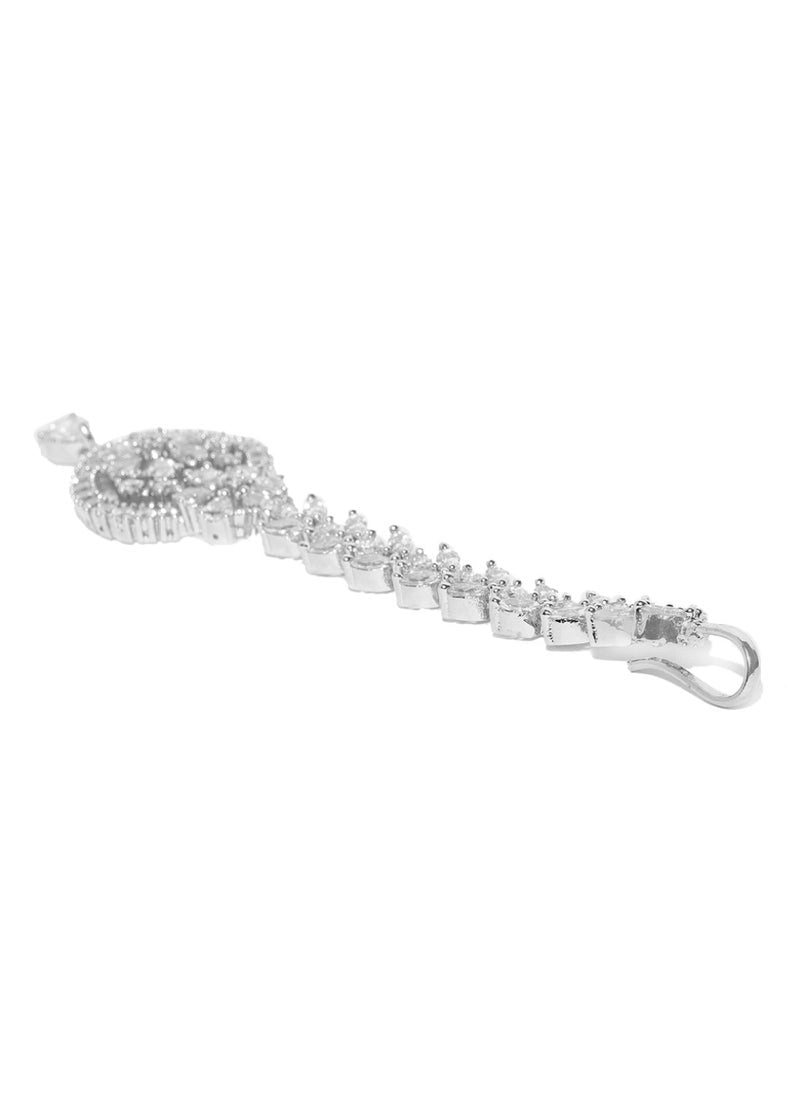 تاج Maang Tika الفضي المرصع بالأحجار الفنية
