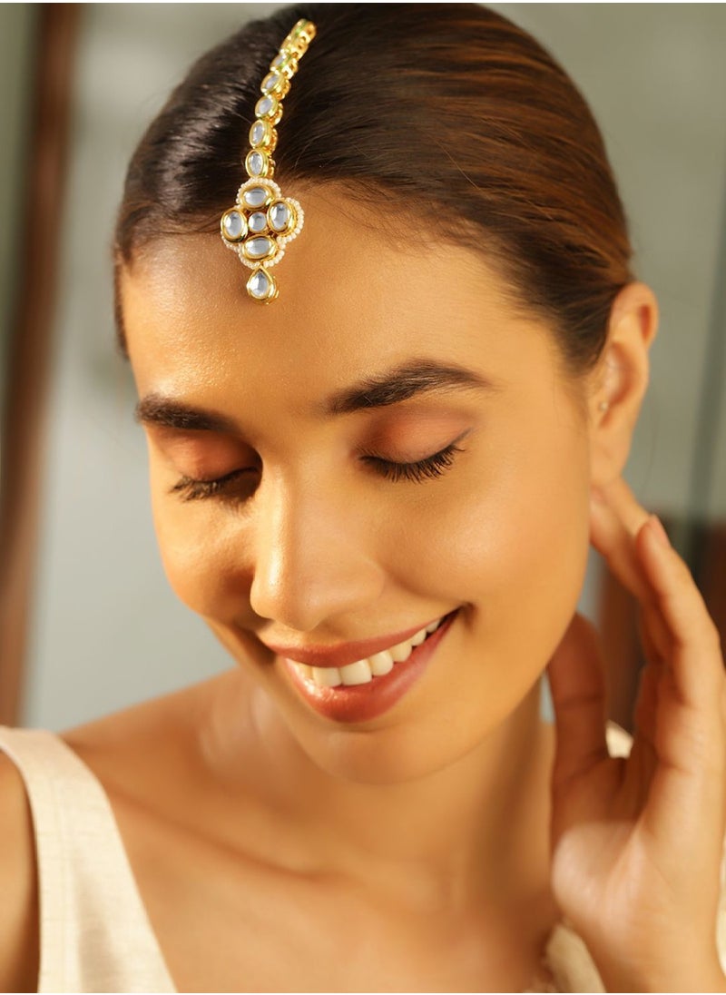يتوافق تاج Kundan هذا بسهولة مع مختلف الأزياء، مما يجعله الخيار الأمثل لتعبري عن ذوقك الرفيع في الجمال. اجعليه جزءاً من مجموعتك الخاصة واشعري بالتميز في كل مناسبة.