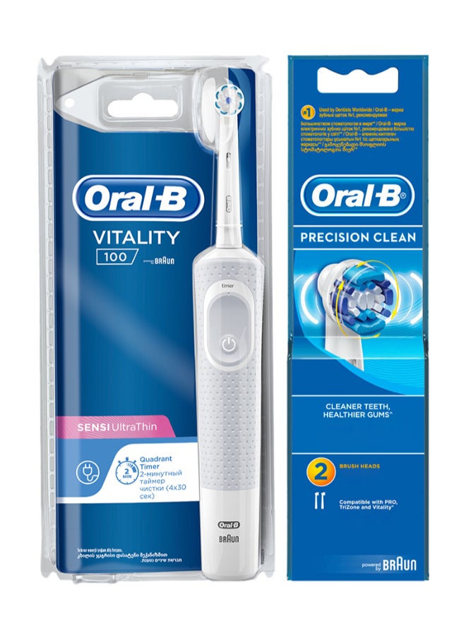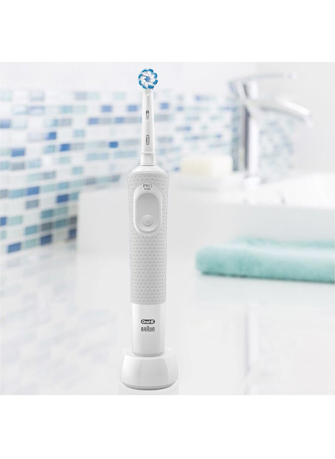 اكتشفوا جمال الابتسامة الصحية مع فرشاة الأسنان الكهربائية Oral-B Vitality D100، التي تقدم تنظيفًا استثنائيًا يتفوق على الفرشاة اليدوية التقليدية. تم تصميم رأس فرشاة CrossAction بوحي من الأساليب الاحترافية لتحيط كل سن بأسنانها المائلة بزاوية 16 درجة، مما يعزز إزالة البلاك بكفاءة عالية بفضل تقنية التنظيف ثنائية الأبعاد التي تجمع بين الدوران والتذبذب.