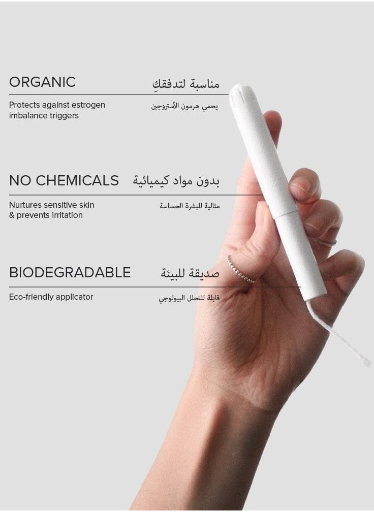 اكتشفي الراحة والأمان مع سدادات أداي الصحية العضوية، المصممة خصيصاً لتمنحك الحماية الفائقة طوال اليوم. هذه السدادات مصنوعة من القطن العضوي المعتمد والمزروع بدون استخدام المبيدات الكيماوية، مما يضمن لكِ استخداماً آمناً وصديقاً للبيئة. تتميز بنظام إدخال ابتكاري بتصميم منحني يسهل استخدامها بشكل مريح وسلس، لفترات طويلة دون تسرب. تحترم سدادات أداي توازن الميكروبيوم المهبلي لتقلل من فرص الالتهابات والتهيج، معززة بذلك صحة المهبل. خالية من الصبغات، الرايون، العطور، ومواد التبييض الكيميائي، مما يحافظ على بشرتك من الطفح الجلدي والتهيج. كل قطعة مغلفة بشكل فردي لضمان النظافة والراحة أثناء التنقل. اختاري أداي للعناية الفائقة والحماية اليومية، متوفرة بخيارات امتصاص متعددة لتلبية جميع احتياجاتك.
