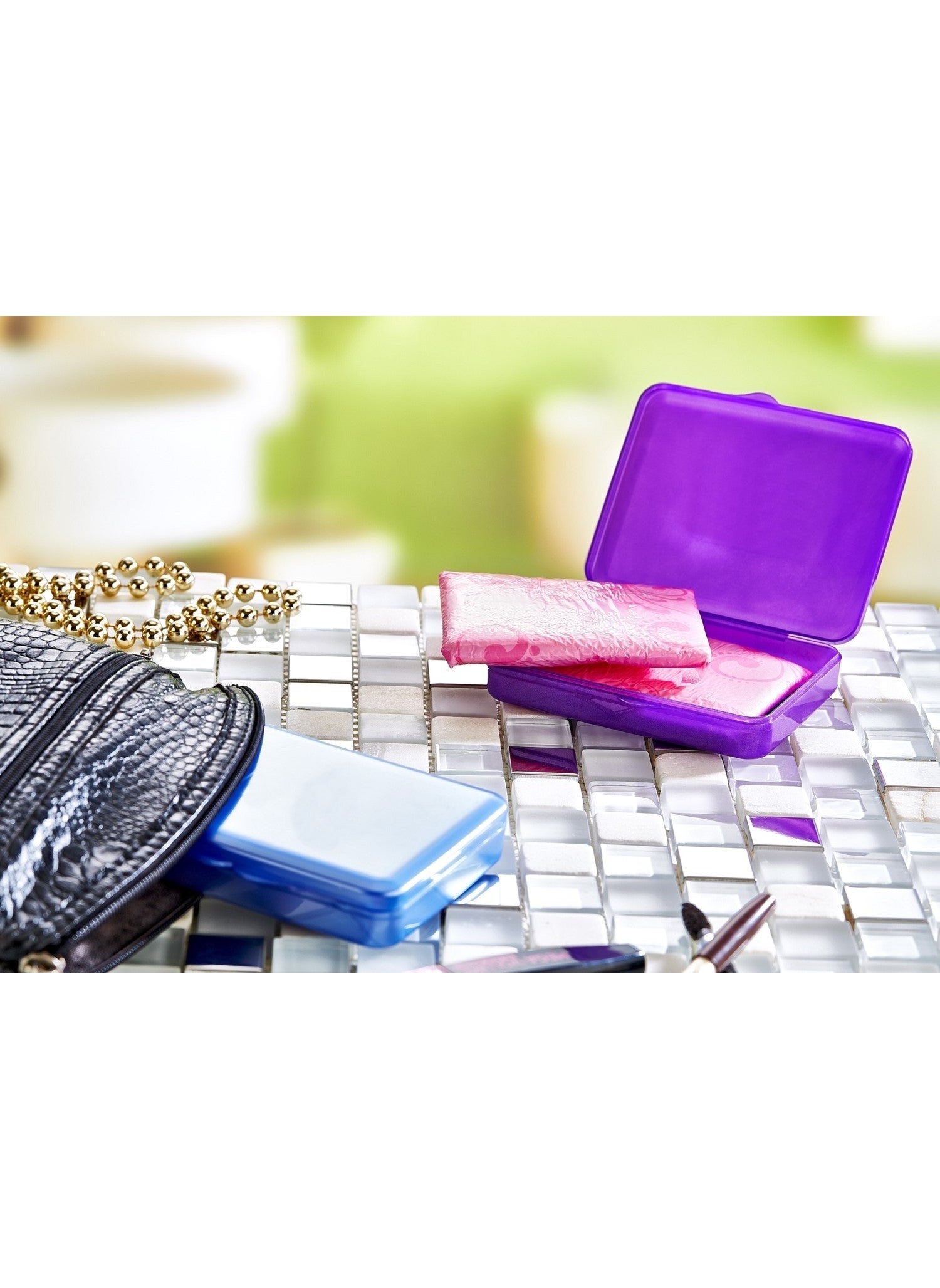 يضمن صندوق تخزين الفوط الصحية الخصوصية التامة، إذ يحافظ على محتوياته مخفية حتى عند الحاجة لإخراجه أمام الآخرين. إضافة إلى ذلك، يمنحك الأمان من التعرض لمواقف محرجة أو غير متوقعة أثناء السفر أو في الأماكن العامة.