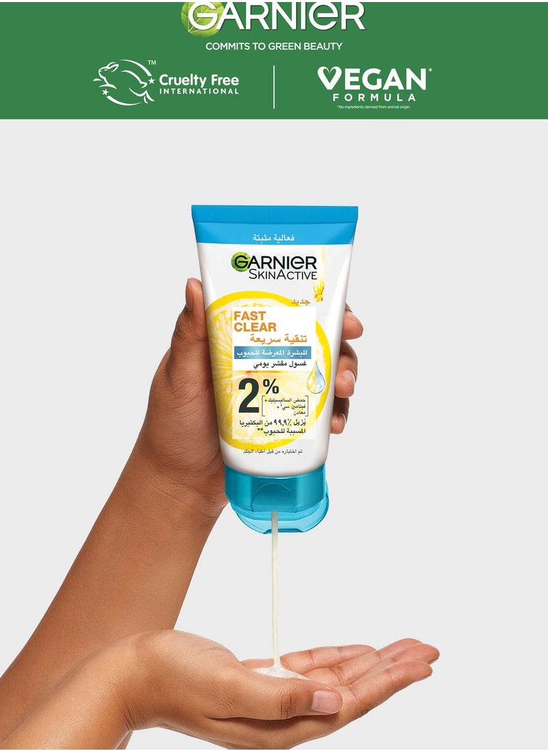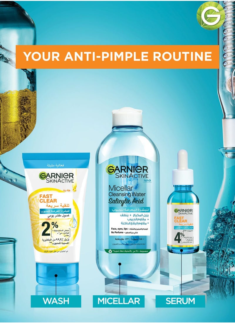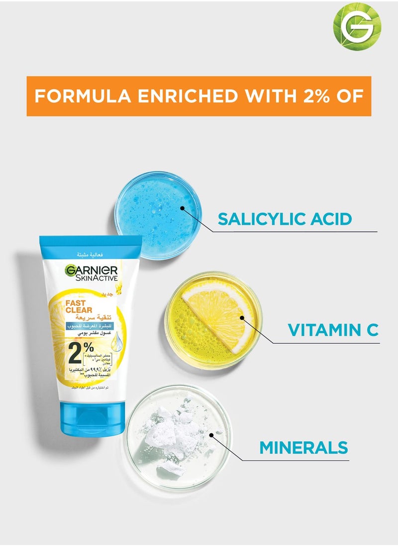 غسول غارنييه سكين أكتيف 3 في 1 بحمض الساليسيليك وفيتامين سي