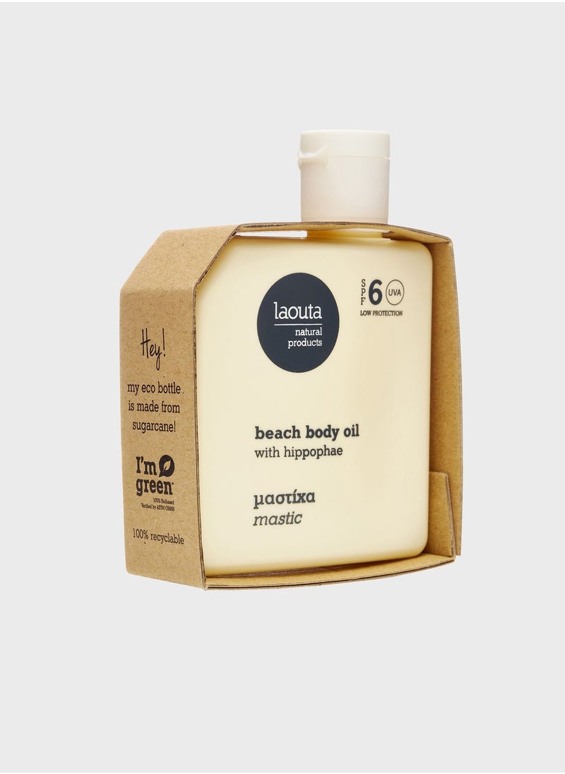 اكتشفي سحر الطبيعة مع زيت تان ماستيك بيتش، المعزز بزيوت نباتية مستخلصة ومغذية تداعب بشرتك بالرطوبة وتحميها من أضرار الشمس بكافة قدتها (UVA وUVB). هذا المنتج الفريد يضفي على بشرتك لمسة ذهبية تعزز من جمالها وتمنحك طلة مشرقة تدوم طويلاً. يتميز زيت تان ماستيك بيتش بمكونات فاعلة كزيت المستكة ونبق البحر، الأمثل للعناية العميقة بجمالك الطبيعي.