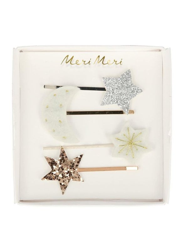 مشابك شعر القمر والنجمة بتفاصيل ذهبية لامعة