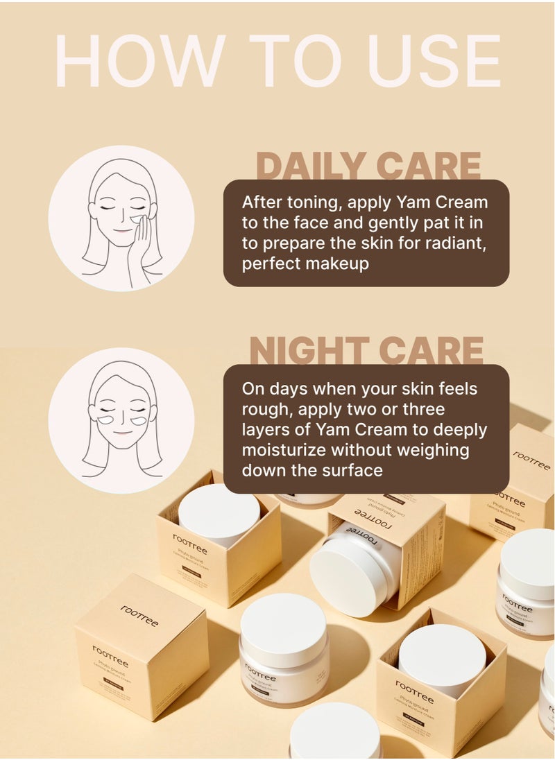استكشف روعة كريم Rootree للترطيب، حيث يجتمع الابتكار الكوري والرفاهية في تحفة واحدة للعناية بجمال بشرتك. تمتع بتجربة فريدة من نوعها تمنح بشرتك ترطيبًا عميقًا ومستمرًا، معزز بأجود المكونات النباتية مثل ميوسين البطاطا المستخرج من أراضي أندونج الخصبة في كوريا.