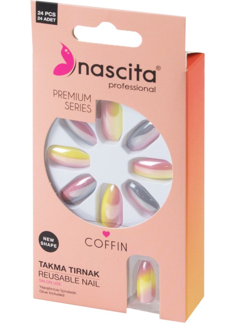أظافر اصطناعية ملونة بتصميم Coffin رقم 184