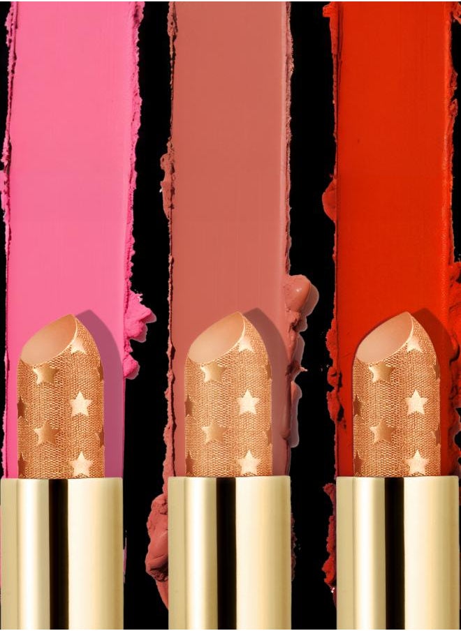 اختاري من بين مجموعة ألواننا الواسعة من الغبار المحمر لنيود خفيف بلمعان ذهبي، أو الانقلاب المرجاني للون مرجاني مشرق، وصولاً إلى كسوف الياقوت لأحمر عميق وقوي. تألقي بإطلالة جريئة أو ناعمة، لكل مزاج ومناسبة، مع أحمر الشفاه هذا الذي يدوم طويلًا ويحافظ على رطوبة شفتيك.