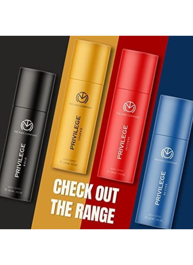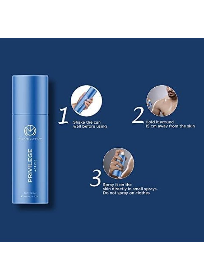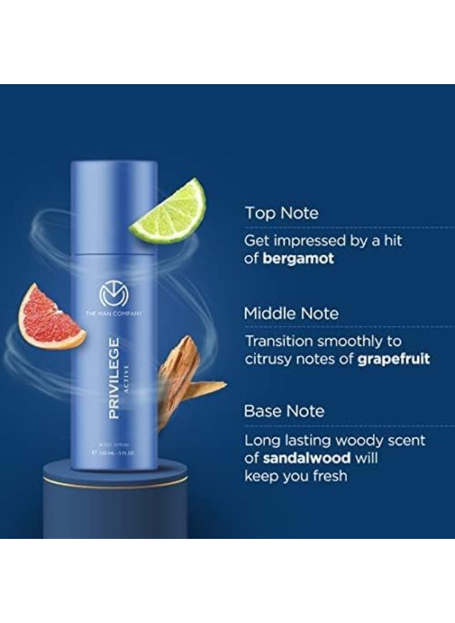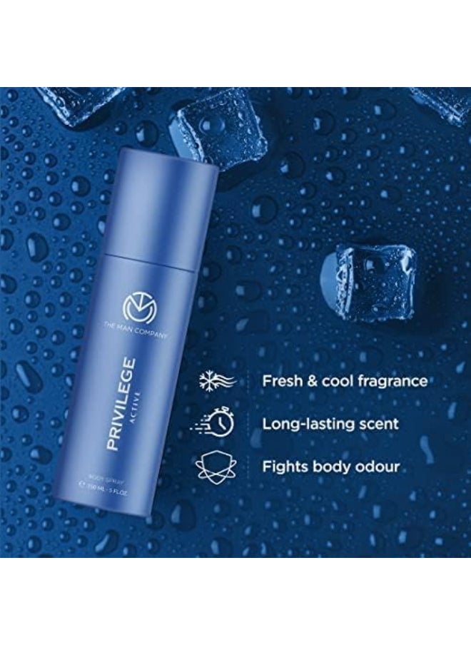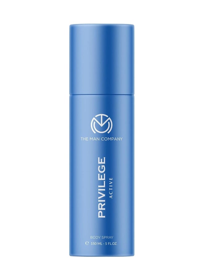 إذا كنت تبحث عن رائحة تعبر عن شخصيتك الفريدة وترافقك لفترات طويلة، فإن بخاخ Privilege Active هو خيارك الأمثل. يتميز بعبيره الافتتاحي الذي ينعش الحواس وبقوته التي تصمد في مواجهة التحديات اليومية.