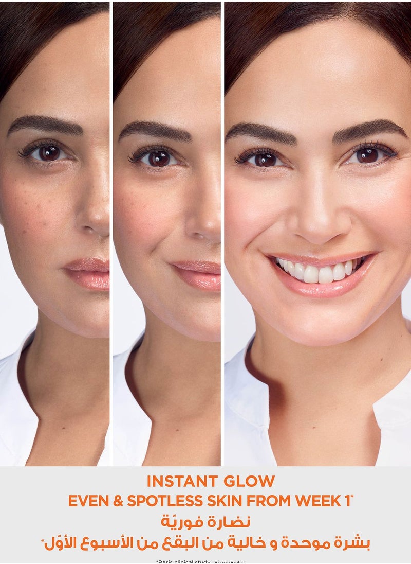 يقلل بفعالية من البقع الداكنة، آثار الأشعة فوق البنفسجية والبثور، مما يجعل البشرة تبدو أكثر إشراقاً.