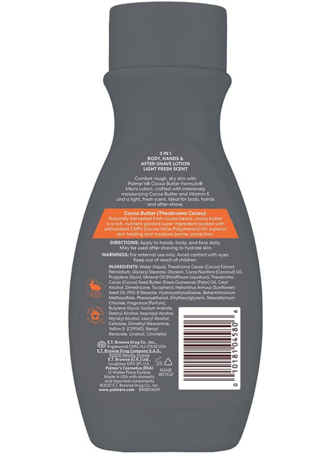 Unlock the power of Palmer's Men's Cocoa Butter 8.5oz, tailor-made for battling dry skin with a robust blend of pure Cocoa Butter and Vitamin E. This ultra-moisturizing lotion absorbs quickly, ensuring a smooth, supple finish from head to toe. Ideal for both body and face, it moisturizes deeply without leaving a greasy residue. The energizing scent is subtle yet refreshing, perfect for men seeking a clean, invigorating aroma. Elevate your daily skincare routine with this essential moisturizer that keeps skin hydrated and vibrant.