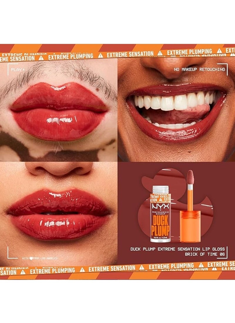 Our 'Brick of Time' shade offers a timeless elegance, combined with the revolutionary plumping power native to Duck Plump products. Whether you're looking for a subtle day look or an enchanting evening glow, our glossy formula provides options ranging from 16 high-pigment hues to three holographic shades — all ensuring your lips stay plush and glamorous throughout the day.