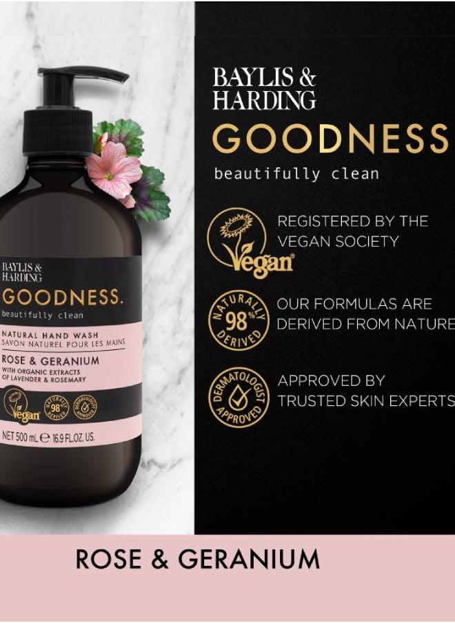 Baylis & Harding Rose & Geranium Hand Wash - Gentle and Organic 500ml