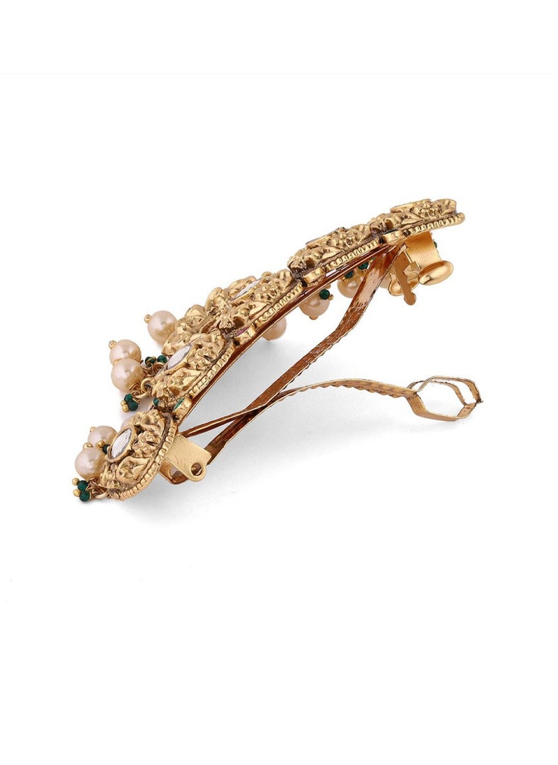 Every ensemble deserves a hint of elegance and our Gold-Toned Red Beaded French Barrette brings just that. This meticulously crafted accessory shines with an array of gold and red beads, adding a sophisticated splash of color to your hairdo. Perfect for both casual brunches and formal gatherings, it holds your hair gracefully while providing a stylish accent. Its durable design ensures a secure fit, keeping your style impeccable throughout the day. Ideal for those who appreciate a blend of classic charm and contemporary flair, this barrette turns an ordinary hair day into an ornate affair.