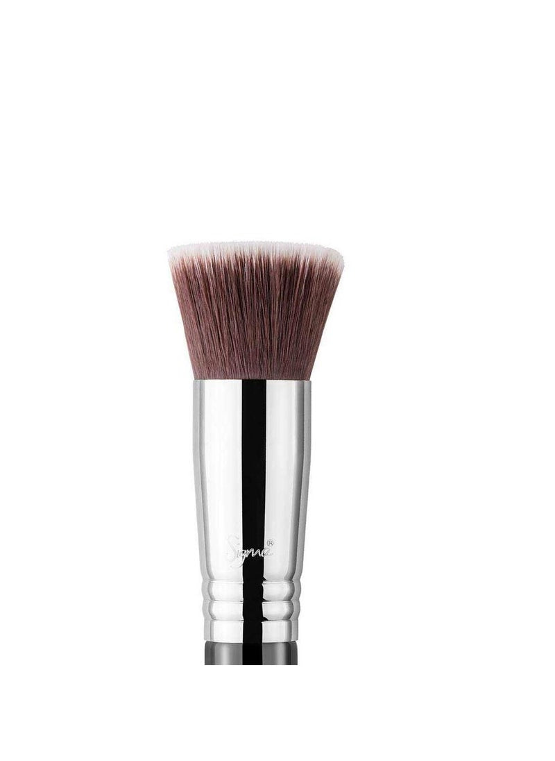 The brush features luxurious Sigmax® fibers, meticulously designed to pick up and lay down liquid and cream foundations smoothly and evenly. Its dense, flat head is expertly shaped to apply and buff foundation, offering buildable coverage from medium to full. The result is a flawless, high-definition complexion every time.