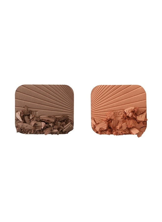 The bronzer's unique blend of pearl and pigment seamlessly contours your face, replicating a sun-kissed glow. Infused with Light Flex Technology, the highlighter captures and reflects light to perfection, ensuring you achieve the most flattering angles on any skin tone. Rich, elastomer pearl pigments deliver smooth, even coverage that's easily blendable, without leaving a trace.