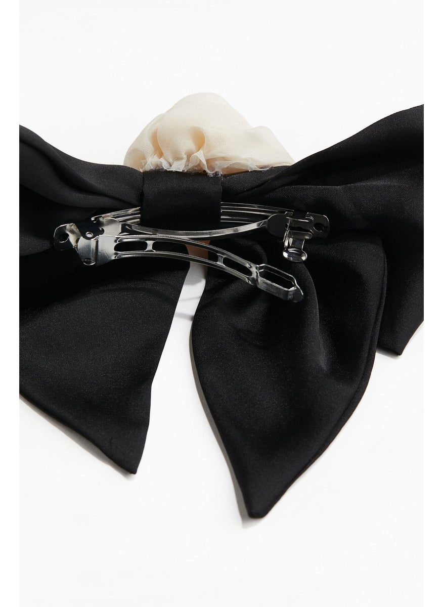 Step up your style game with the Enchanted Blossom Bow Clip, artistically crafted to elevate any look. This elegant hair accessory pairs a sumptuous fabric bow with a central floral appliqué, creating an eye-catching accent perfect for both casual brunches and formal gatherings.