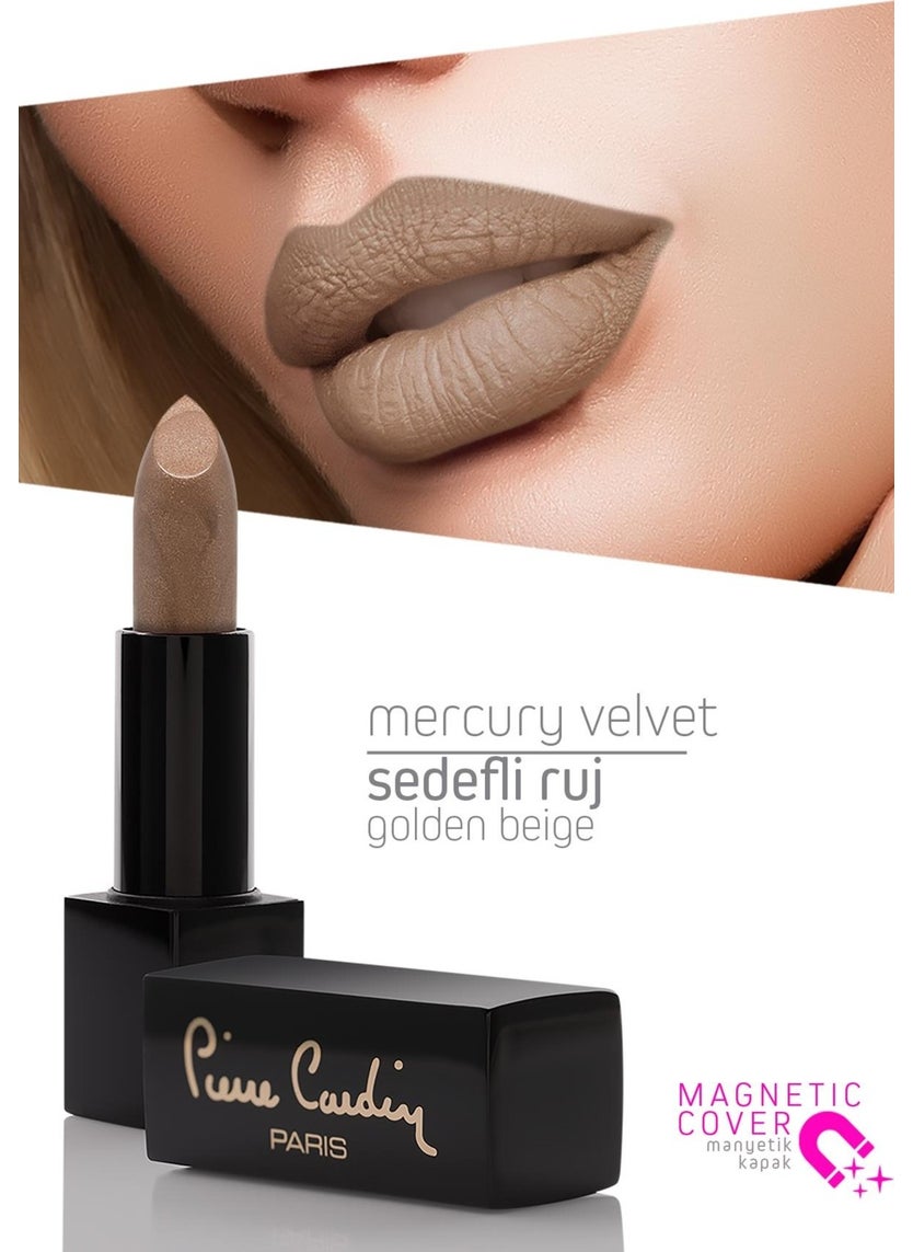 Transform your smile with the Golden Beige Velvet Mercury Lipstick - 159. A harmonious blend of nude and light pink hues, this lipstick offers a mesmerizing matte metallic finish that complements any look. Its highly pigmented and luxuriously soft formula glides seamlessly across your lips, enveloping them in lasting, full coverage with a permanent effect that refuses to fade or smudge. Dive into elegance with every application and feel the unique liquid texture that promises a lightweight yet vivid lip color experience. Embrace bold sophistication with Mercury Velvet—where color meets comfort.
