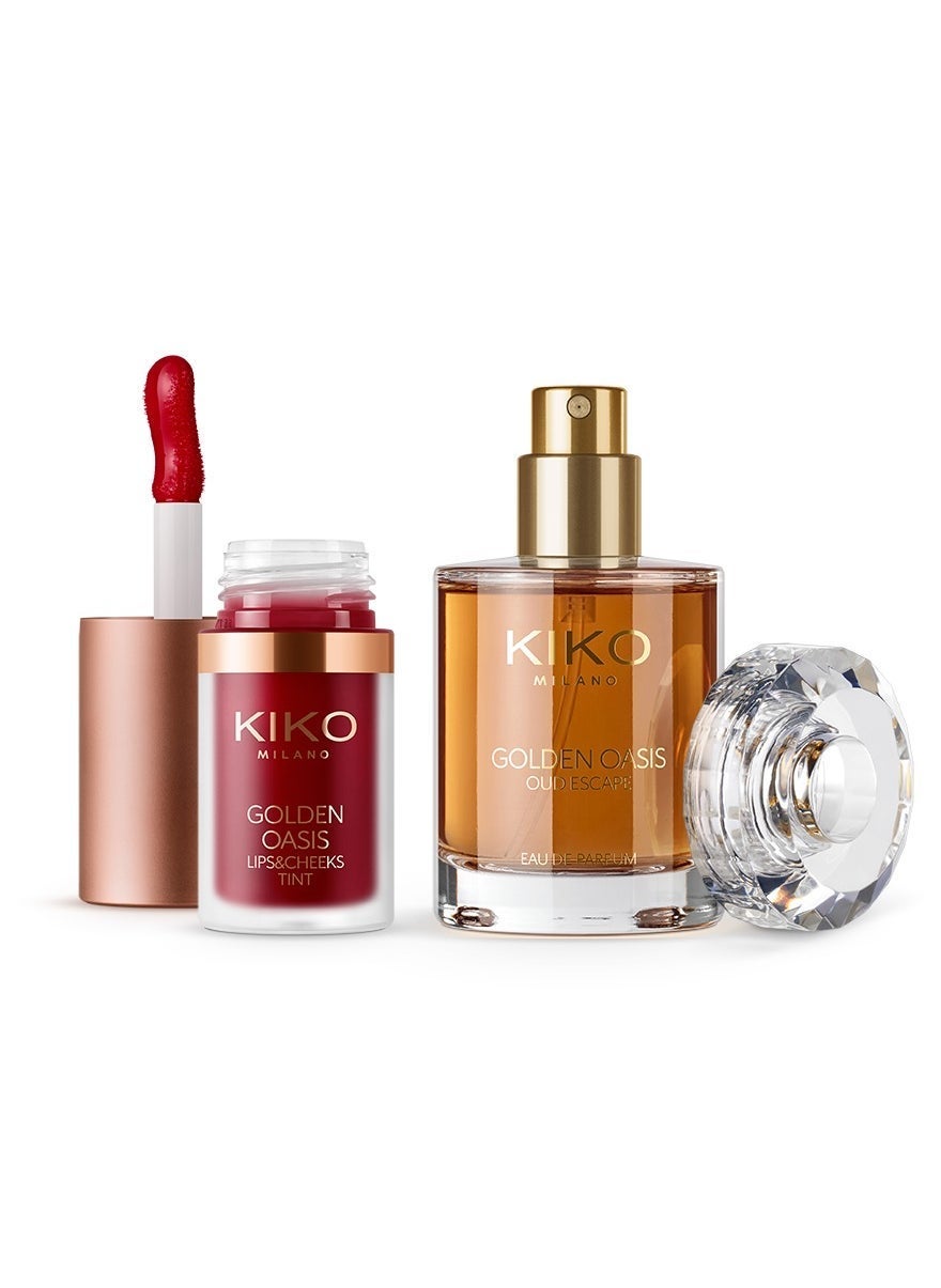 Unveil the secrets of dual charm with our Golden Oasis Beauty Essentials - Luxe Duo Kit. Elevate your beauty ritual with this exquisite collection featuring the innovative Golden Oasis Lips & Cheek Tint and the captivating Golden Oasis Oud Escape Eau De Parfum. The tint boasts a lightweight gel texture that melts effortlessly into your skin, imparting a flawless burst of color to both cheeks and lips for a radiant, cohesive look. Effortlessly blendable, this multipurpose marvel is perfect for those who cherish simplicity yet demand luxury.