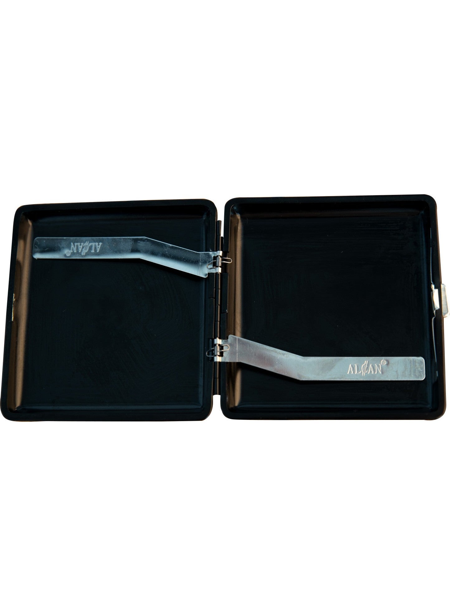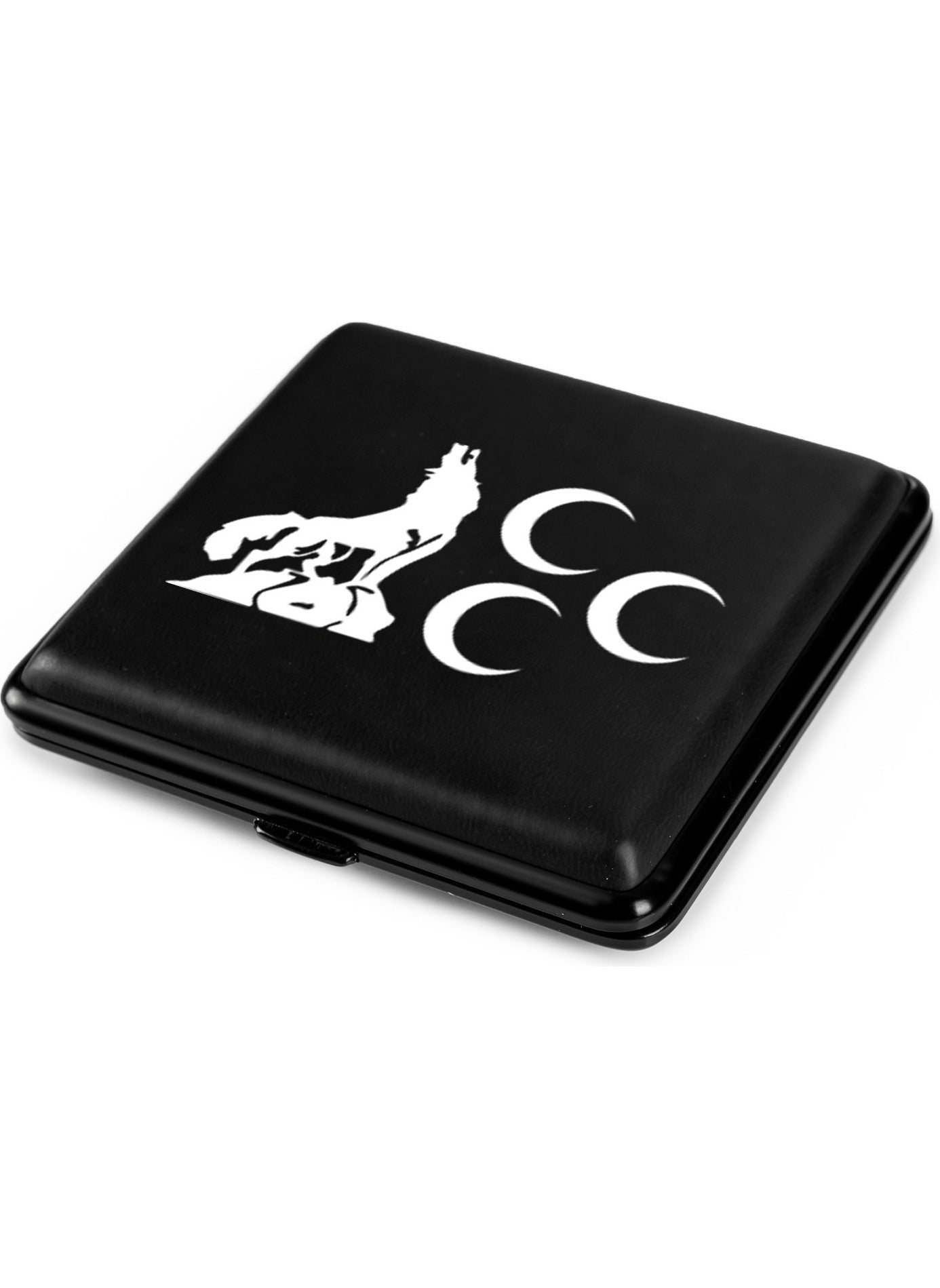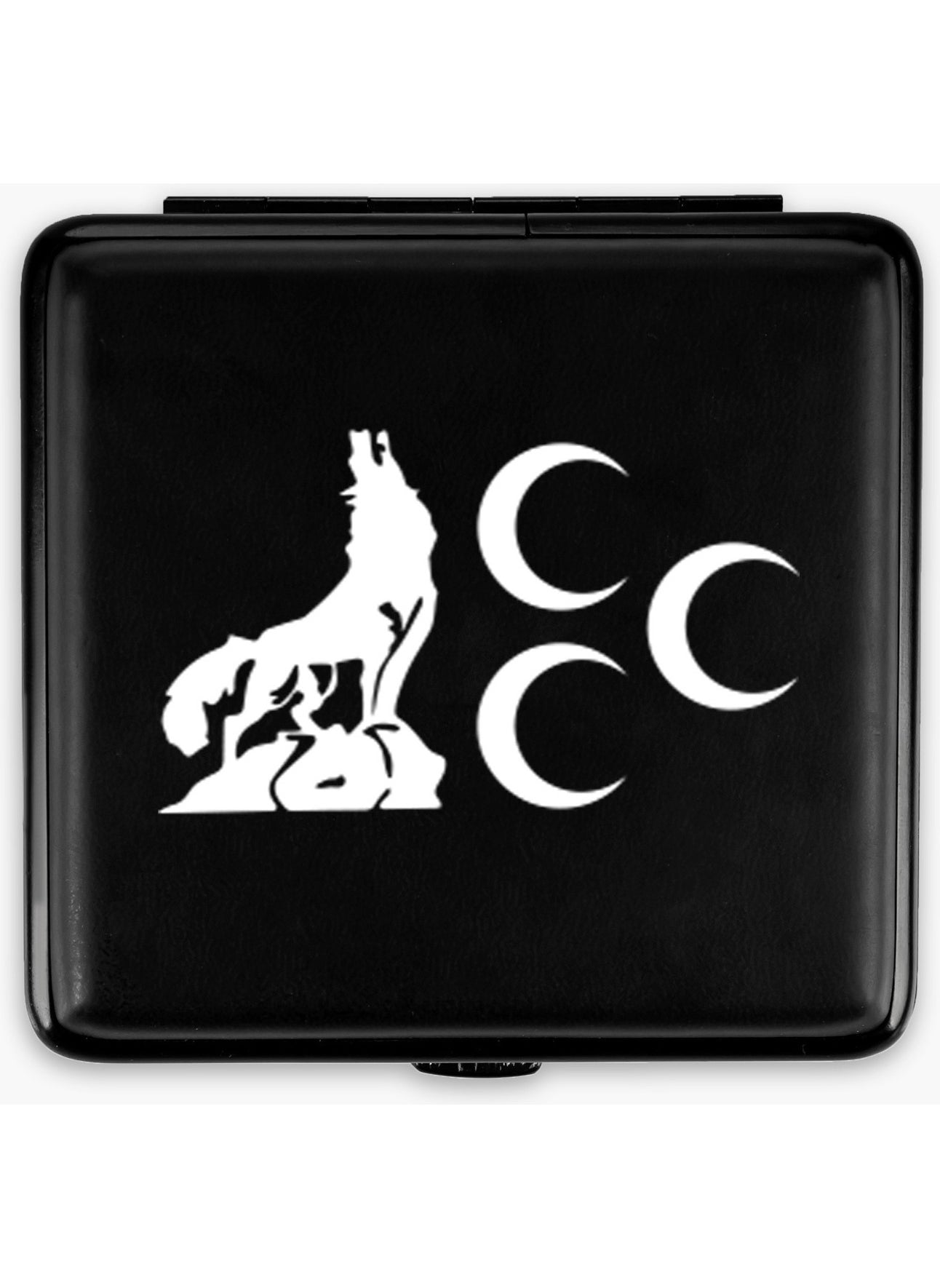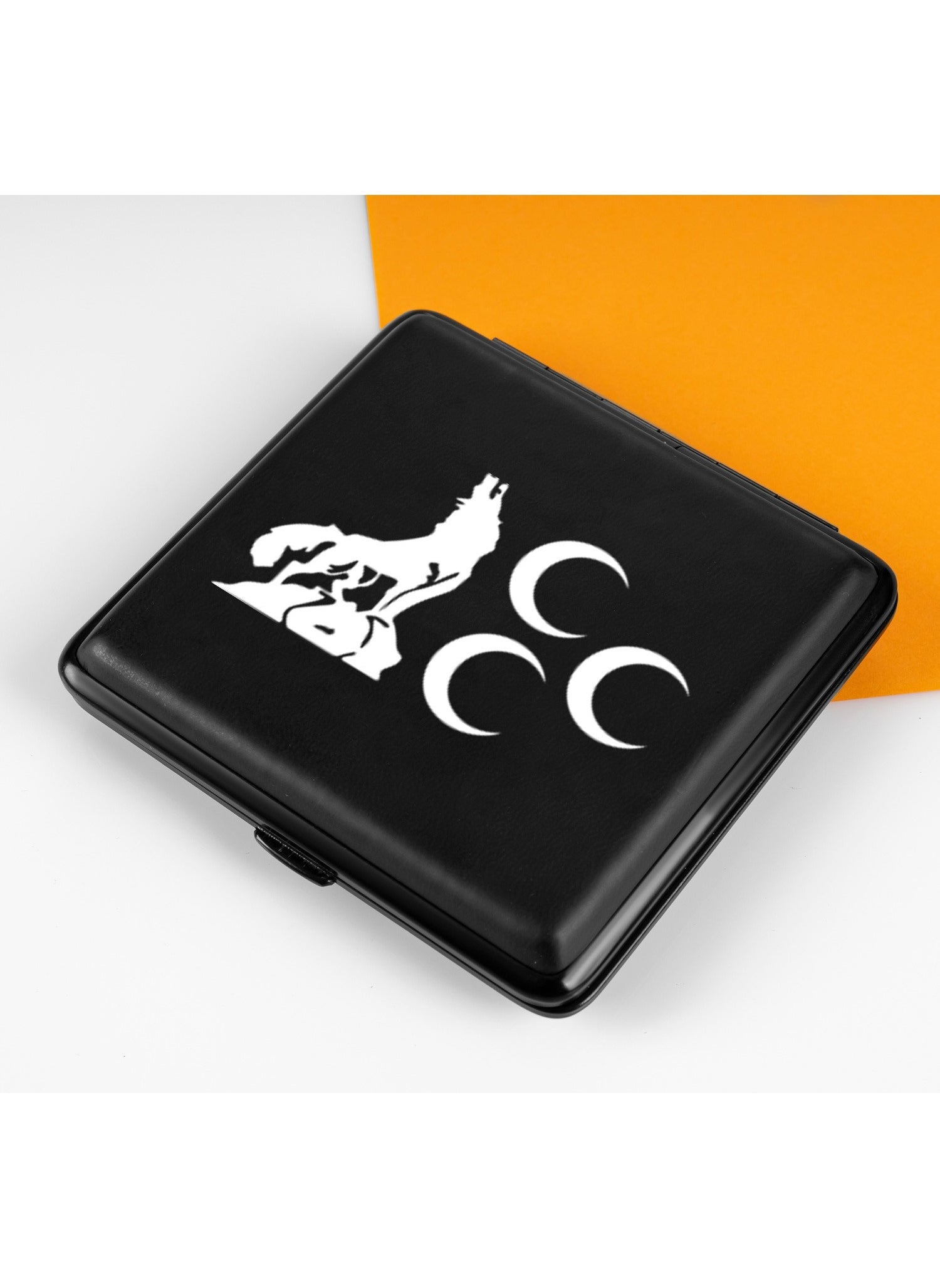 Step into the wild with our Gray Wolf Crescent Cigarette Case, a sleek accessory designed to combine elegance with utility. Compact at just 9.5 cm x 9 cm, this matte black metal case is both discreet and durable, ensuring your cigarettes are protected in style. Ideal for carrying up to 20 cigarettes, you can stay organized and stylish, whether you're heading to a business meeting or a casual outing. Let the distinctive gray wolf design reflect your untamed spirit and impeccable taste.