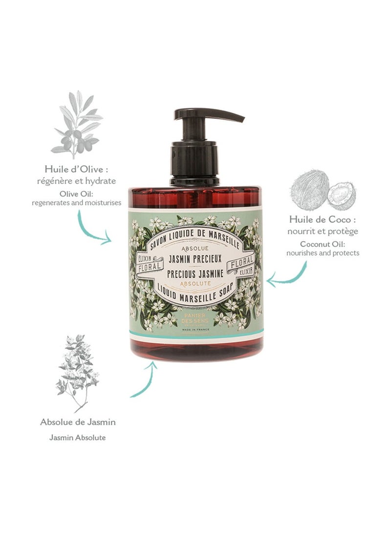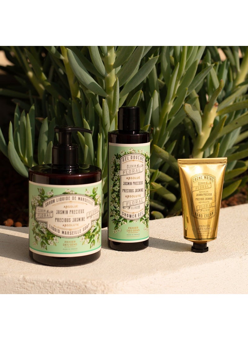 Immerse yourself in the elegance of Grasse with our Jasmine Velvet Liquid Marseille Soap. Crafted with meticulous care, this soap blends 100% vegetable oils with the opulence of Jasmine to envelop your senses in a delicate, yet profound fragrance.
