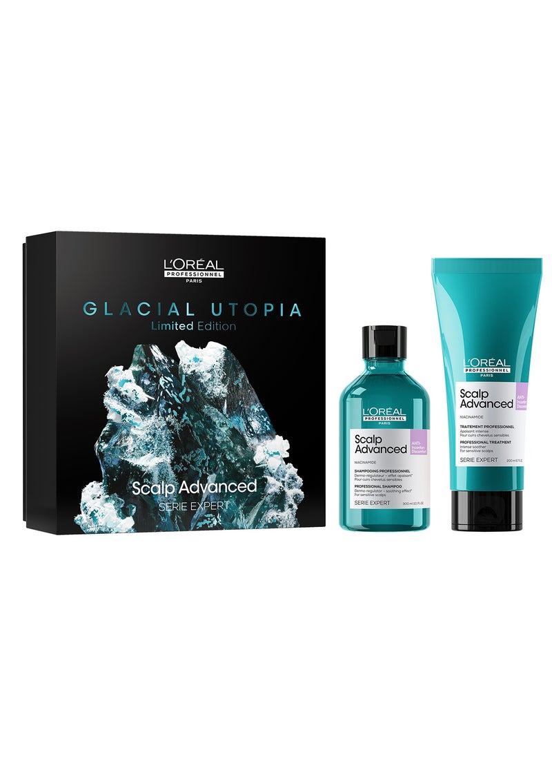 Transform your hair care routine with the L’Oréal Glacial Utopia Anti-Discomfort Duo, specially curated for those battling scalp discomfort. This powerful set combines a 300ml shampoo and a 200ml treatment to seamlessly tackle itching, burning, and tingling sensations caused by sebum oxidation and micro-cracks on the scalp surface.