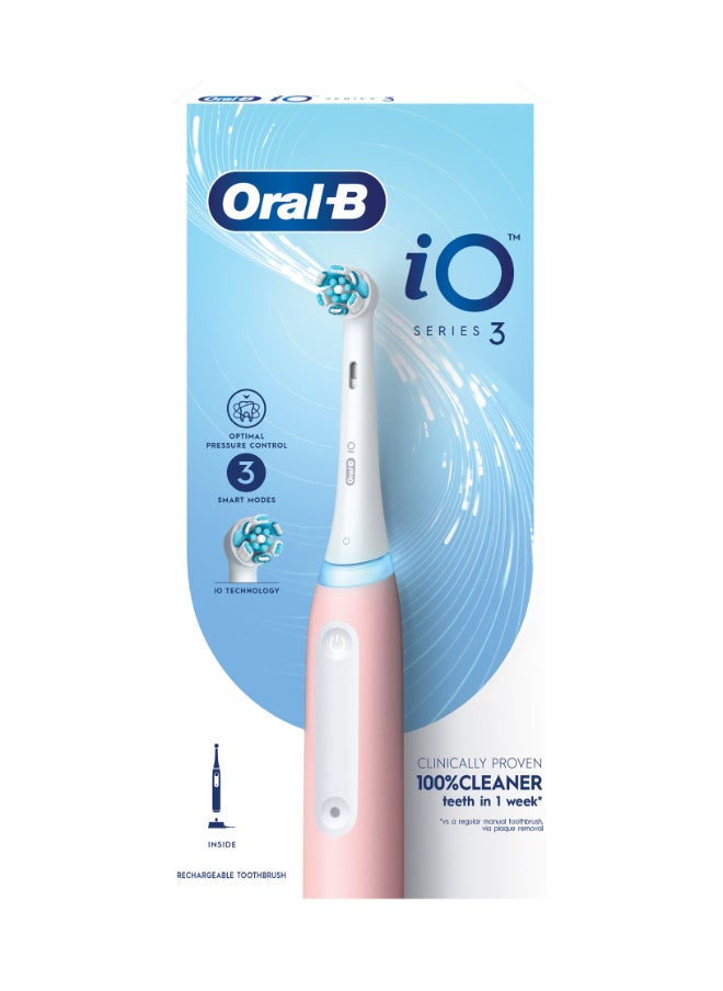 Transform your oral care routine with the Oral B iO 3 Electric Toothbrush, engineered to provide a groundbreaking clean. Its superior design features a unique round brush head that enhances tooth-by-tooth cleaning through innovative micro-vibrations and oscillating movements. Achieve the perfect brushing pressure with the built-in smart pressure sensor, which signals red to prevent harsh brushing and green for optimal force. Customize your brushing experience with three tailored modes: Daily Clean, Whitening, and Sensitive. Each mode is designed to cater to different oral care needs, ensuring 100% cleaner teeth and healthier gums. The intuitive vibrating timer helps you maintain the dentist-advised two-minute brushing time, ensuring thorough coverage. Added peace of mind comes with a 2-year warranty on this advanced toothbrush. Make the switch to smarter brushing and feel the difference!