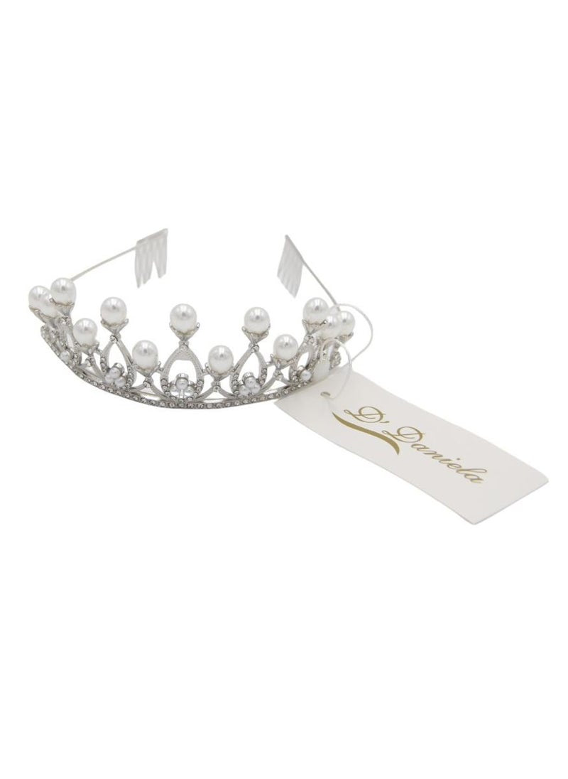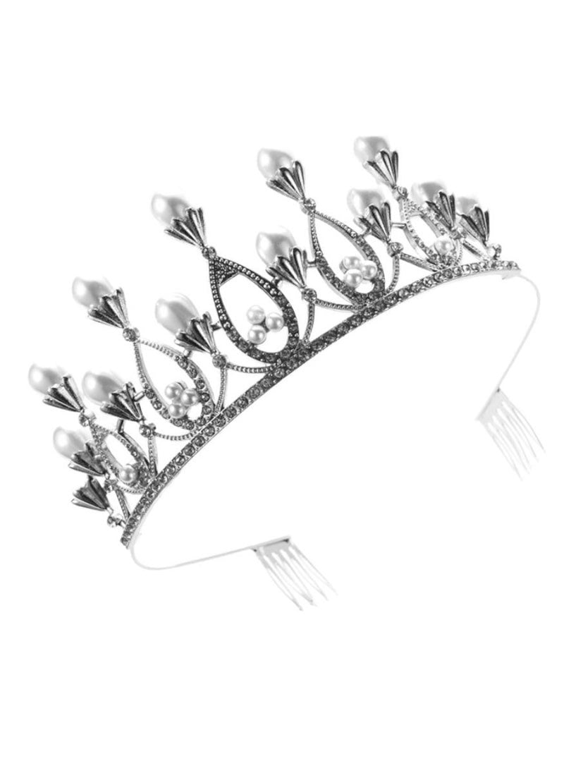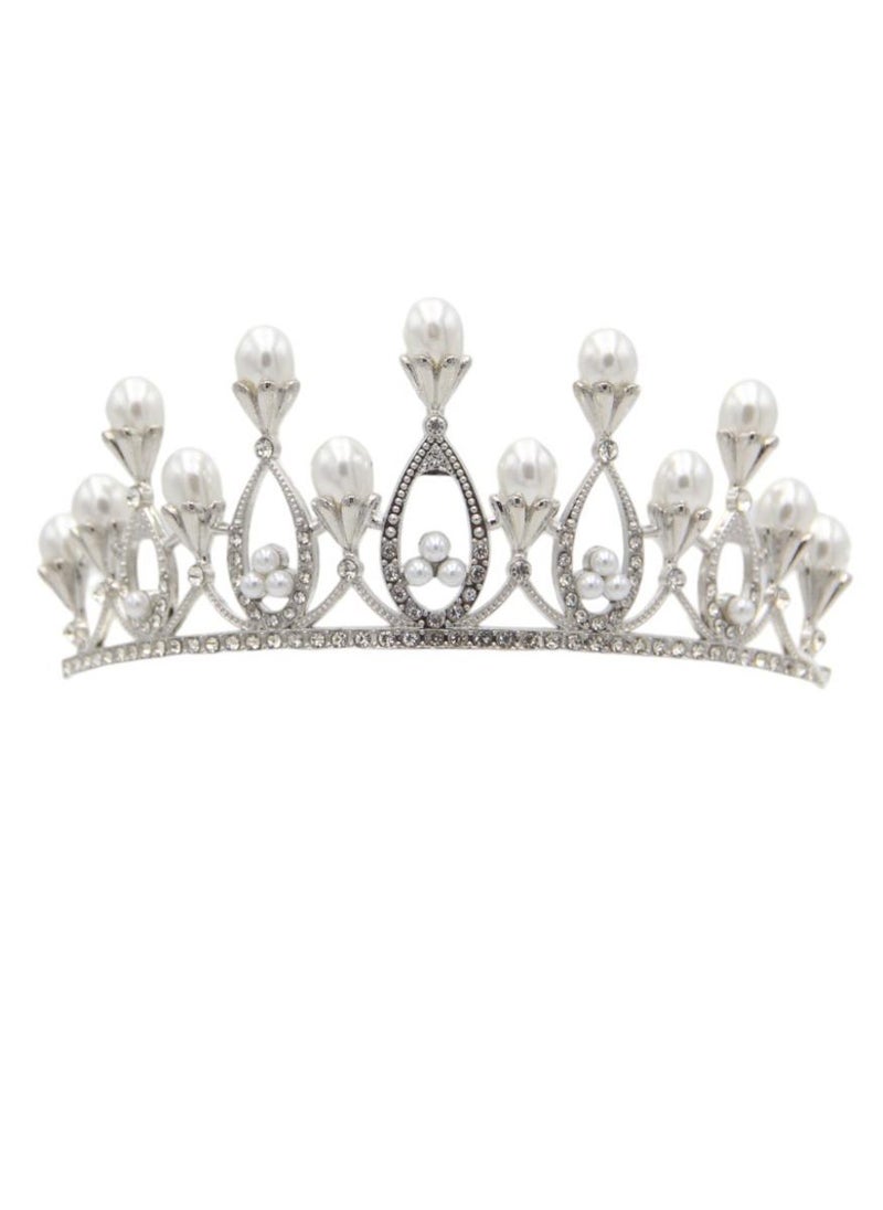 The Princess Silver Tiara combines elegance and durability, crafted from a hard alloy with a diamond-like sparkle and embellished with exquisite faux pearls. This tiara isn’t just sturdy; it's designed to dazzle, making it a perfect addition to elevate any special occasion. Whether gracing a wedding, enhancing the glamour at proms, or adding a royal touch to birthday celebrations, this sparkling headpiece promises to transform your ensemble. It also serves beautifully as a gift or a photography prop, ensuring that every moment looks picture-perfect.