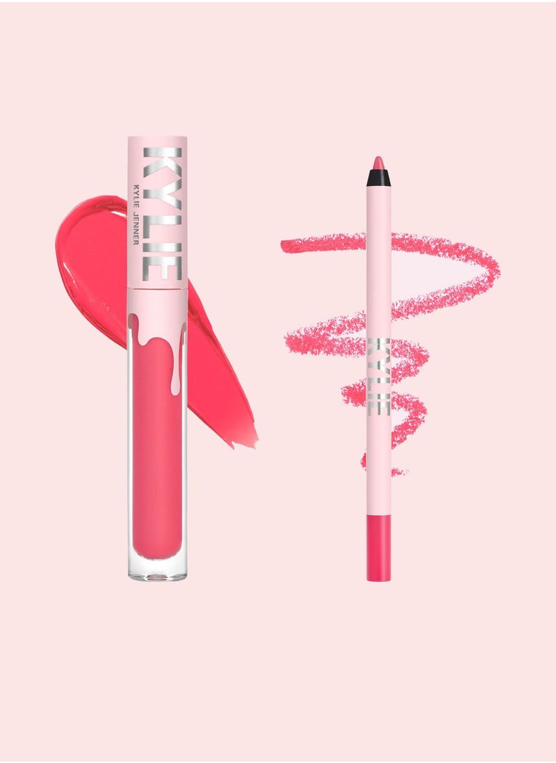 Infused with rich, vivid pigments, this set promises a striking look with seamless application. The Lip Liner precisely contours, ensuring no feathering, while the Matte Liquid Lipstick delivers full, lush coverage. Together, they provide an impeccable, durable matte effect.