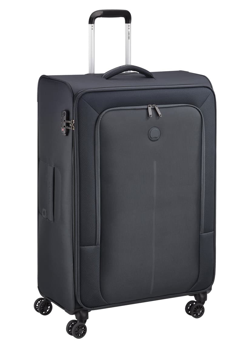 Elegance and durability converge with the DELSEY Paris 82 Caracas softcase. This 82cm premium check-in luggage trolley is designed for the sophisticated traveler, featuring four double wheels that promise a smooth and effortless glide through busy terminals. Crafted in sleek black, its expandable design accommodates those extra items you might gather on your journeys. The robust exterior ensures your belongings are safely shielded, while the meticulously organized interior makes packing a breeze. For globetrotters who cherish both style and functionality, this luggage offers a seamless travel experience.