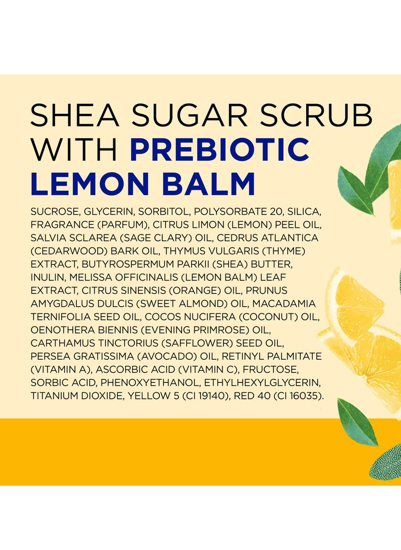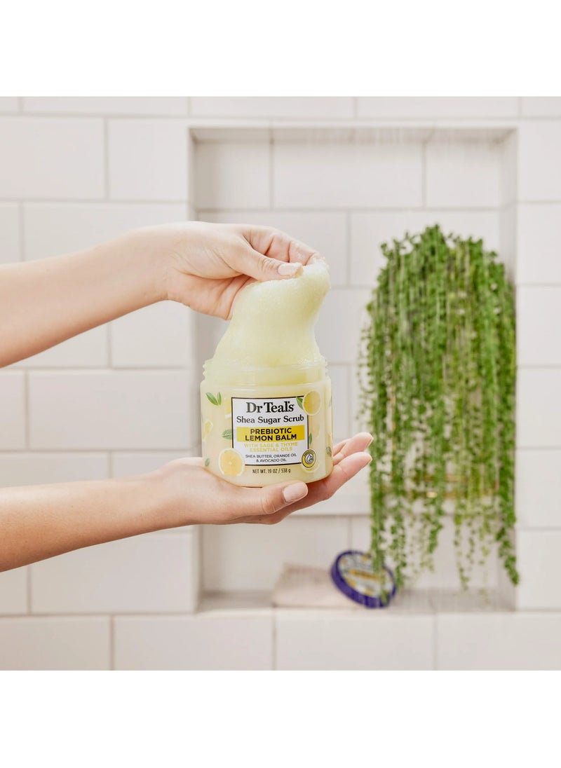 Reveal luminous, silky skin with Dr Teal's Prebiotic Lemon Balm Shea Sugar Scrub. Crafted with a nourishing blend of prebiotics and natural shea butter, this 538-gram jar of exfoliating marvel gently polishes away dead skin cells while soothing and hydrating your skin. Infused with the refreshing essence of lemon balm, it elevates your exfoliation experience, leaving your skin radiantly healthy and softly scented. Ideal for those who seek a luxurious spa experience at home. Perfect for daily use to achieve consistently smooth, glowing skin.