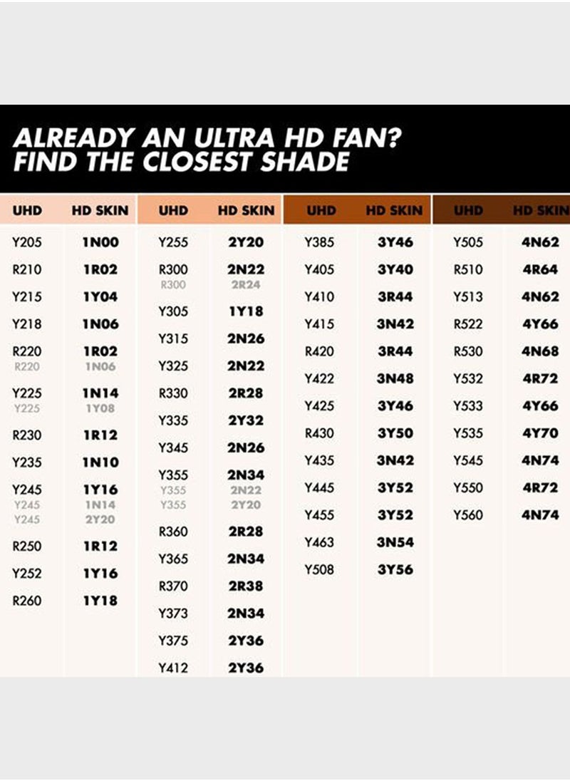 Choose your true match from 40 diverse shades categorized in four skin tones (light, medium, tan, deep) and three undertones (red, neutral, yellow). Applying HD Skin is a breeze; use a brush for lighter coverage or a sponge for an undeniably rich finish.
