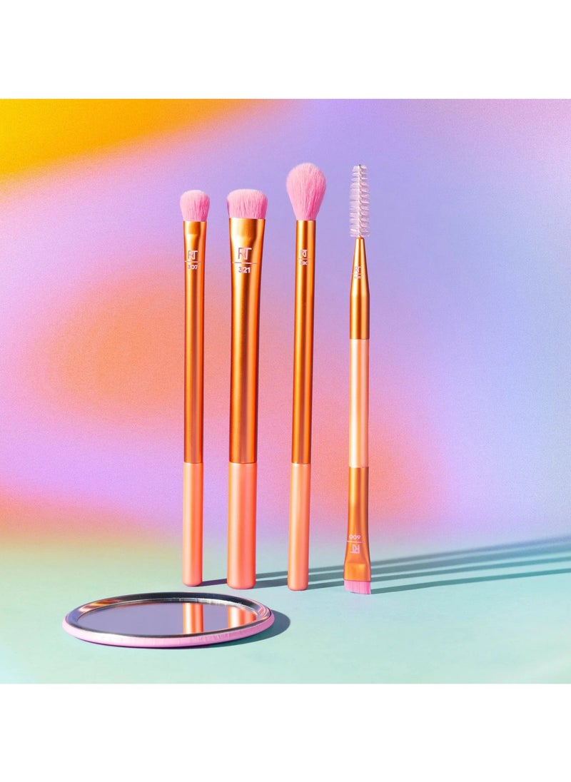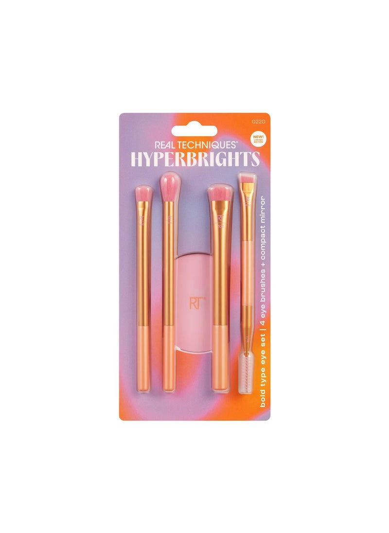 Illuminate Your Eyes with Hyper Brights! Redefine your eye makeup game with the Hyper Brights Bold Type Eye Set. Featuring an ensemble of four premium brushes and a sleek compact mirror, this set promises an all-night striking look. Our collection includes the RT 307 Shading Brush, RT 320 Blending Brush, RT 321 Full Coverage Brush, and the RT 600 Wide Angled Brow Brush, each crafted to transform your eyes with effortless precision.